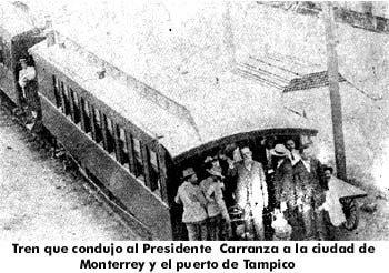 Manolo. El bien parecido Tío General, de tremendos bigotes, era la cabeza del Ejército del Noreste que tenía su cuartel general en el Estado de Tamaulipas, lugar de la república del que era oriundo, pues al igual que nuestra abuela y como he dicho nació en Cd. Jiménez, Tams. Antes de entrar Carranza a la ciudad de México, tuvo que llegar a un acuerdo con los distintos generales que encabezaban el movimiento para que le otorgaran el reconocimiento y para ello el primer Jefe salió por tren desde Saltillo rumbo a Monterrey y luego a Tampico. |