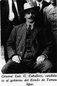 Al triunfo de la Revolución todos los generales seguramente esperaban una retribución justa de la Patria por su arriesgada participación en la lucha armada y el Gral Caballero y en su estado natal Tamaulipas se consideraba con el derecho de ser Gobernador. Aproximadamente en el año de 1918, hasta donde puedo deducir; el problema político en la entidad fue de los más serios, pues tanto el Gral. Luis Caballero y César López de Lara tomaron posesión como Gobernadores del Estado con sus respectivas legislaturas, de manera simultanea. El gobierno del Centro no los reconoce y continúa como Gobernador el Gral. Alfredo Ricaut. Se trasladan ambos candidatos a la Ciudad de México y en la casa del Gral. Pablo González tratan de llegar a un acuerdo, pero como no lo logran, los partidarios de ambos candidatos y muy al estilo de aquella época tienen un encuentro a tiros en el Bosque de Chapultepec, muriendo el coronel Francisco Aguirre, Jefe de la escolta del Gral. Caballero y quedando herido el diputado larista Emilio Portes Gil (que después fue presidente de la república). Por tales razones el Senado nombra al Profesor Andrés Osuna, como Gobernador Provisional. |